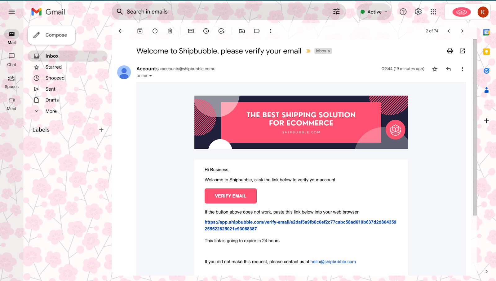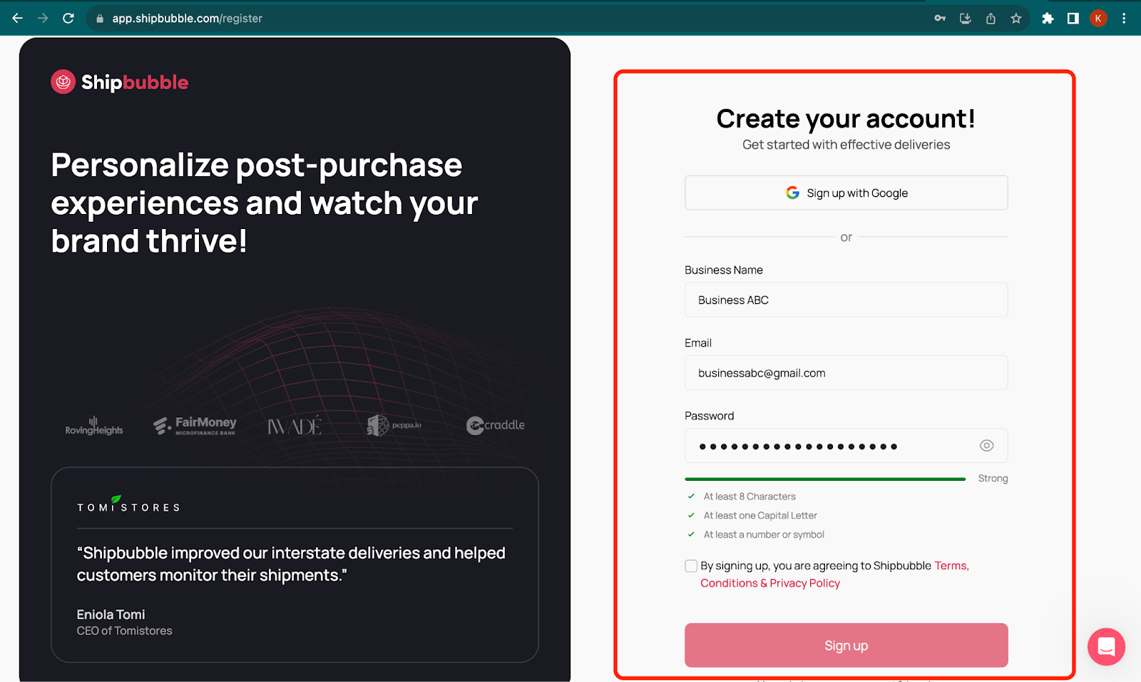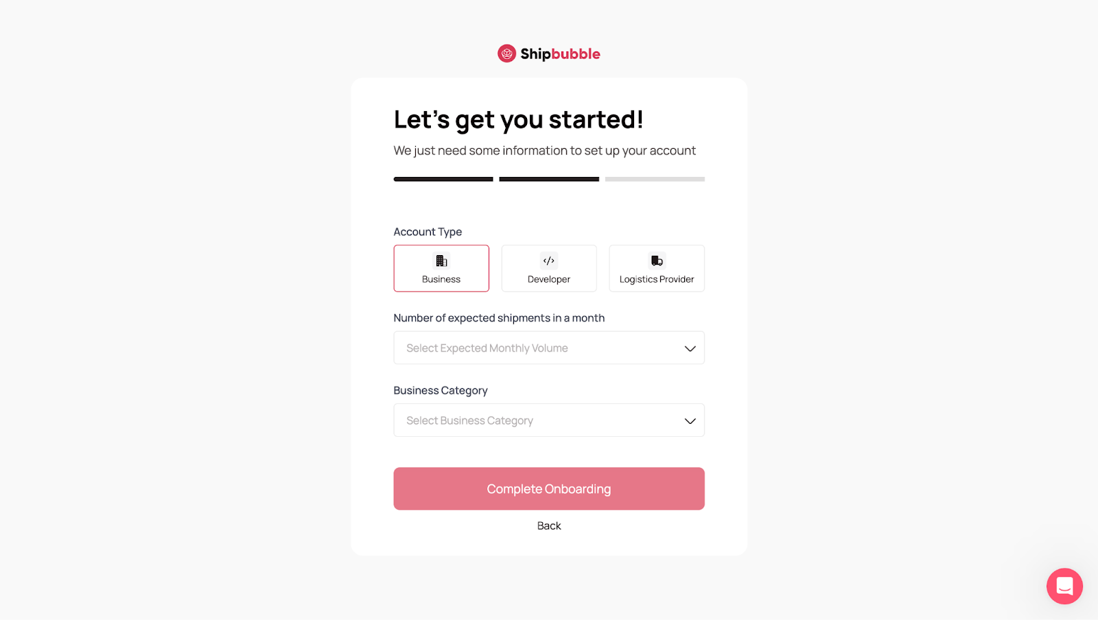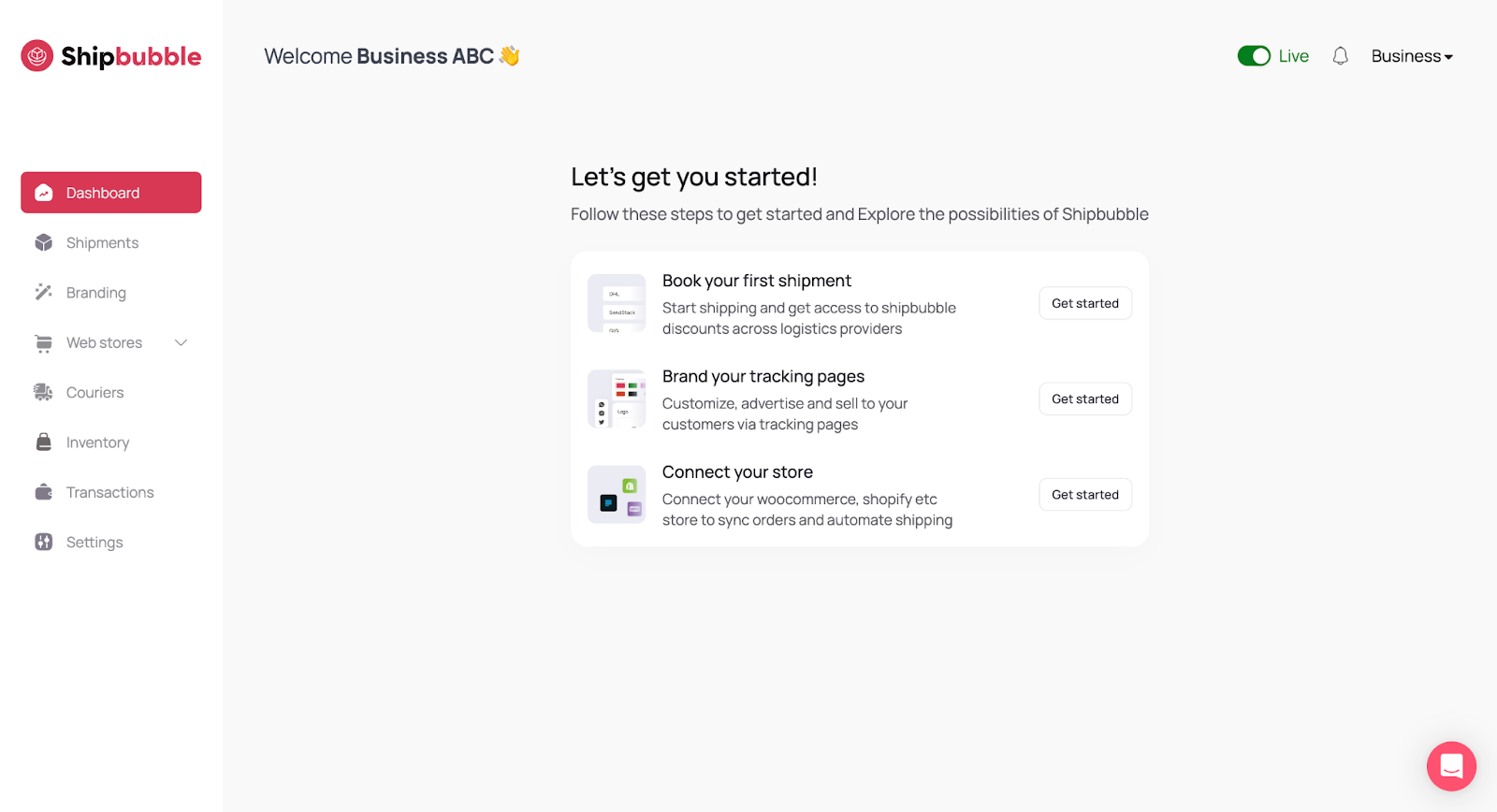 - Once your email has been verified, you will be welcomed into your new Shipbubble account! Here, you can create your first shipment, customise your tracking pages, connect your e-commerce store, and do so much more.